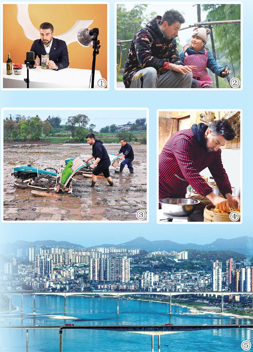 ">图①:阿布在直播带货。 本报记者 宋豪新摄 图②:阿布在给女儿讲故事。 刘常伟摄 图③:阿布在使用插秧机插秧。 刘常伟摄 图④:阿布在做粉蒸肉。 罗森波摄 图⑤:泸州城市一角。 牟 科摄